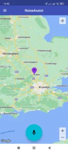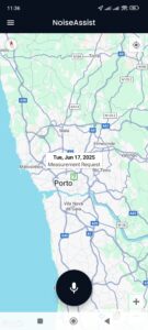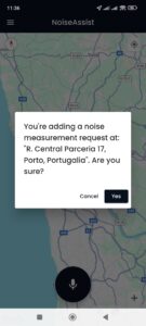 • After acceptance, an icon (green with a question mark) will be visible on the map, signaling a request to perform a measurement. This icon is visible to all NoiseAssist users.